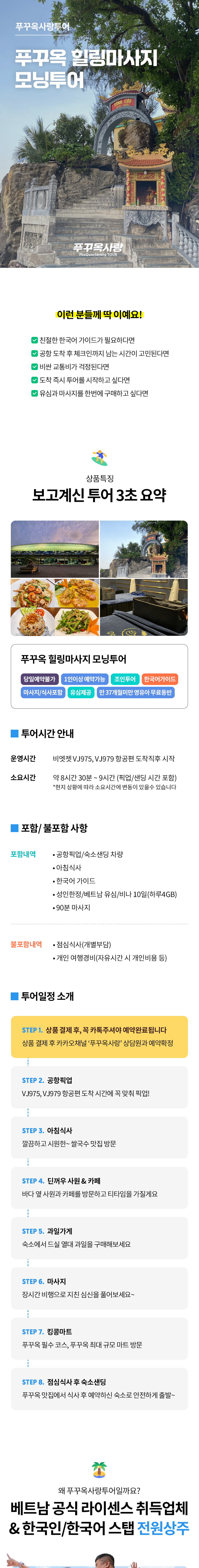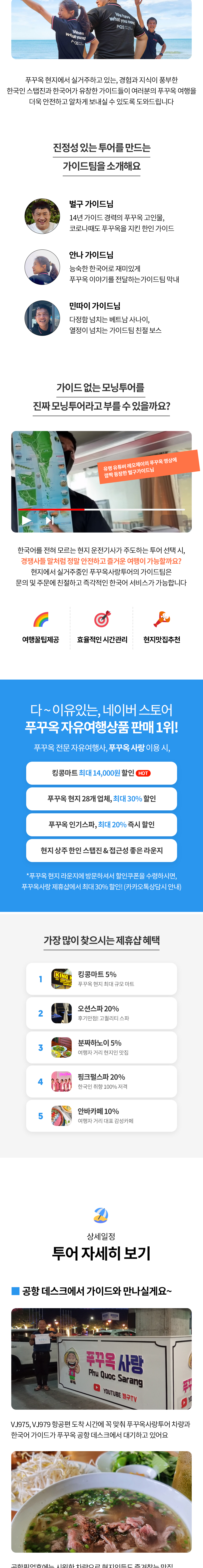- 걱정하지 마세요, 투어 진행이 불가할 정도로 너무 늦지 않을 경우, 한국어 가이드가 푸꾸옥사랑투어 공항 데스크에서 계속 대기합니다