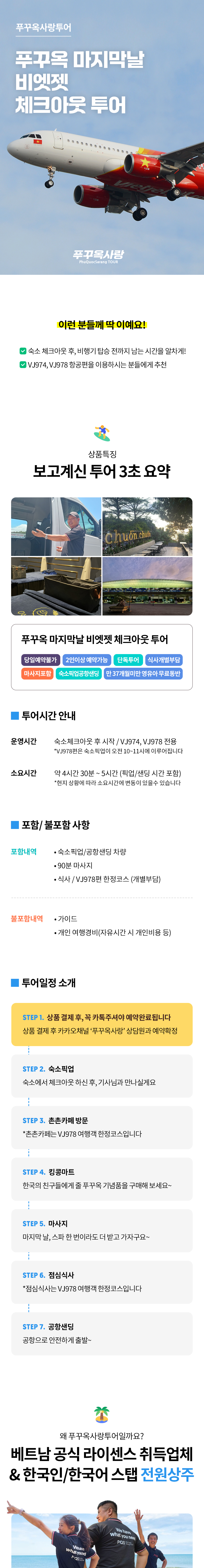 푸꾸옥 비엣젯 체크아웃투어 굿바이 마지막날 투어 픽업샌딩 마사지