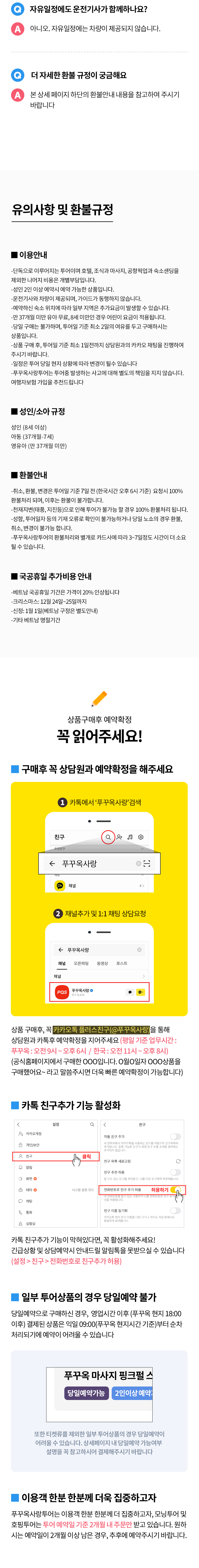 • 상품 구매 후, 원활한 추가 진행을 위해 '푸꾸옥사랑' 채널에서 상담원에게 예약을 확인해주세요