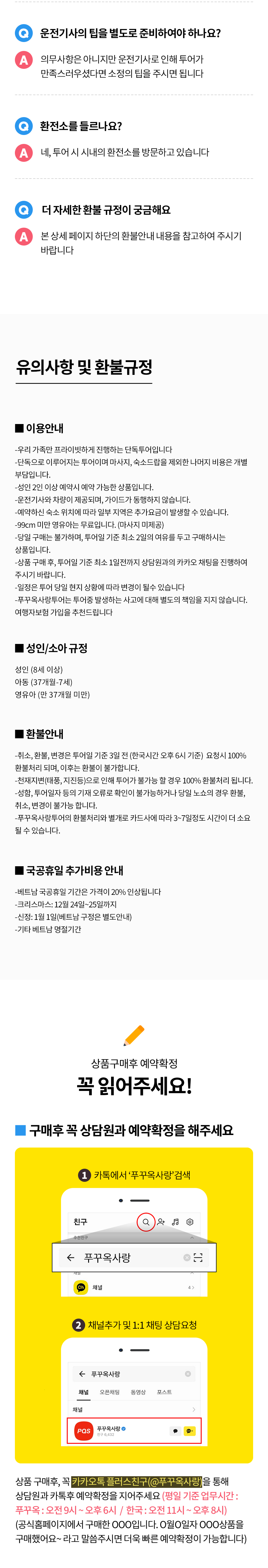 - 현지 날씨나 베트남 공휴일 등 투어 당일 상황에 맞춰 변경될 수 있습니다