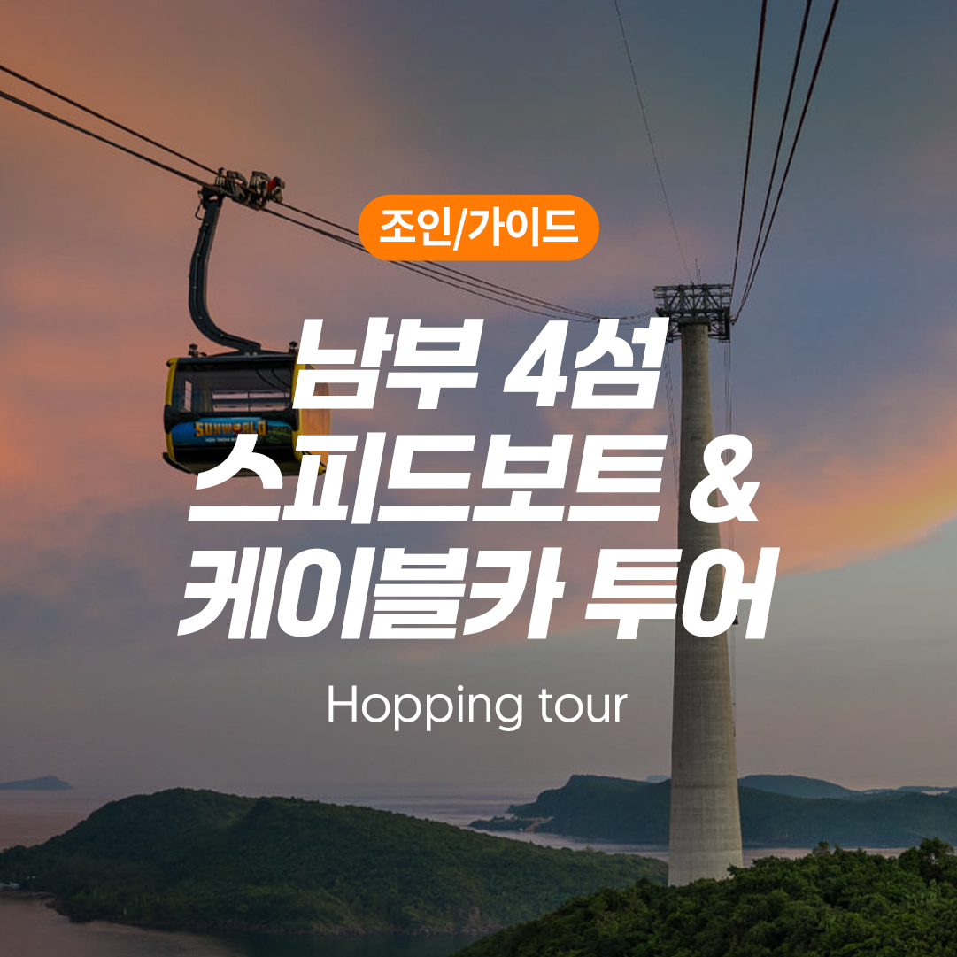 안녕하세요 Xin Chao! 여러분의 푸꾸옥 여행을 도와드릴 푸꾸옥 전문 자유여행사 푸꾸옥사랑투어 입니다. ✅ 남부4섬을 돌며 스노클링과 케이블카를 즐기는 코스입니다 ✅ 가이드(영어)와 운전기사가 포함됩니다 ✅ 케이블카(편도)이용권, 투어배 및 차량과 점심식사 포함 ✅ 공용 스노클링 장비 및 생수 포함 ✅ 투어 현장에서 액티비티 상품 추가구매 가능 ⏰ 투어시간 안내 : 푸꾸옥 현지시각 08:00~17:00 호핑투어와 함께 케이블카를 타보고 싶은 여행객들에게 추천하는 푸꾸옥사랑투어 추천상품, '푸꾸옥 남부 4섬 케이블카 호핑투어' 입니다😊 🔴 예약 진행관련 안내 푸꾸옥사랑투어는 이용객 한분 한분께 더욱 집중하고자, 모닝투어 및 호핑투어는 투어 예약일 기준 2개월 내 주문만 받고 있습니다. 원하시는 예약일이 2개월 이상 남은 경우, 추후에 예약주시기 바랍니다.