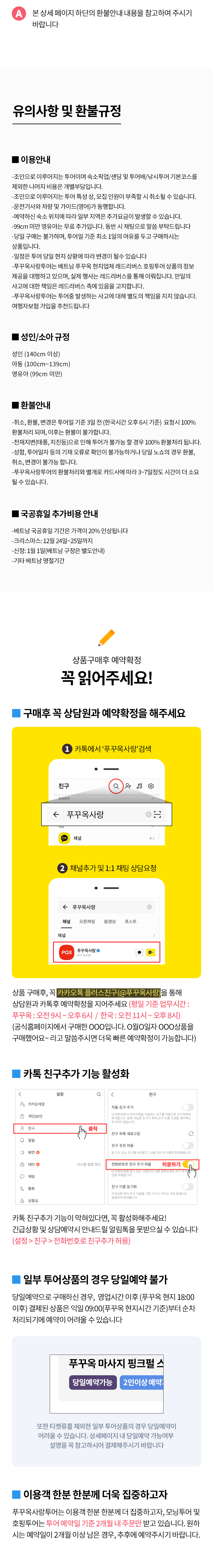 • 상품 구매 후, 원활한 추가 진행을 위해 '푸꾸옥사랑' 채널에서 상담원에게 예약을 확인해주세요